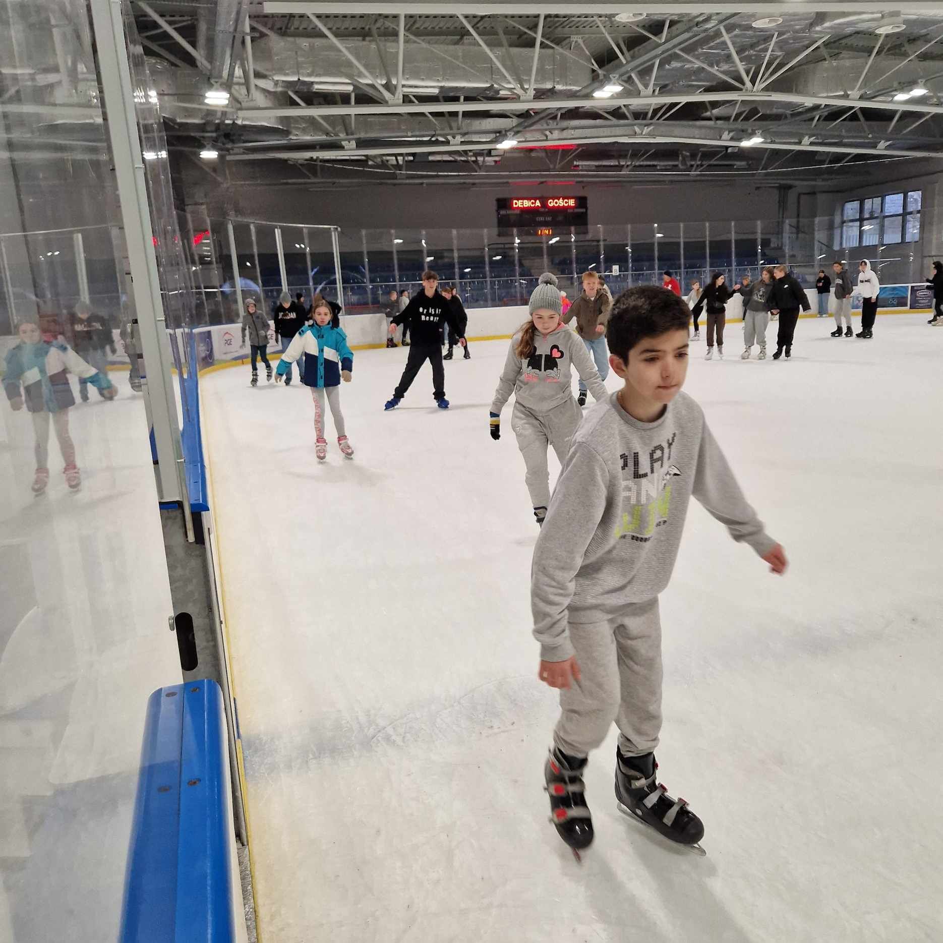 W czwartek 14.12.2023 roku uczniowie naszej szkoły z klasy IV i V, a także kilku uczniów z klasy VII i VIII z tytułu wyróżnienia za uczestnictwo w szkolnych zajęciach SKS wyjechali na kryte lodowisko do Dębicy. W wyjeździe uczestniczyło 21. uczniów. Celem wyjazdu była nauka i  doskonalenie umiejętności jazdy na łyżwach, zaspokojenie potrzeb poznawczych i intelektualnych uczniów, kształtowanie postaw społecznych przez kontakt z ludźmi. Uczestnictwo w zajęciach na lodowisku było także zachętą do aktywnej formy spędzania wolnego czasu, wypoczynku i rekreacji, co wpisuje się w założenia realizowanego w szkole projektu „Trzymaj Formę”. Wyjazd zorganizowali i sprawowali opiekę nad uczniami wychowawcy klasy IV i V: Robert Pacześniowski i Bernadeta Pabian.