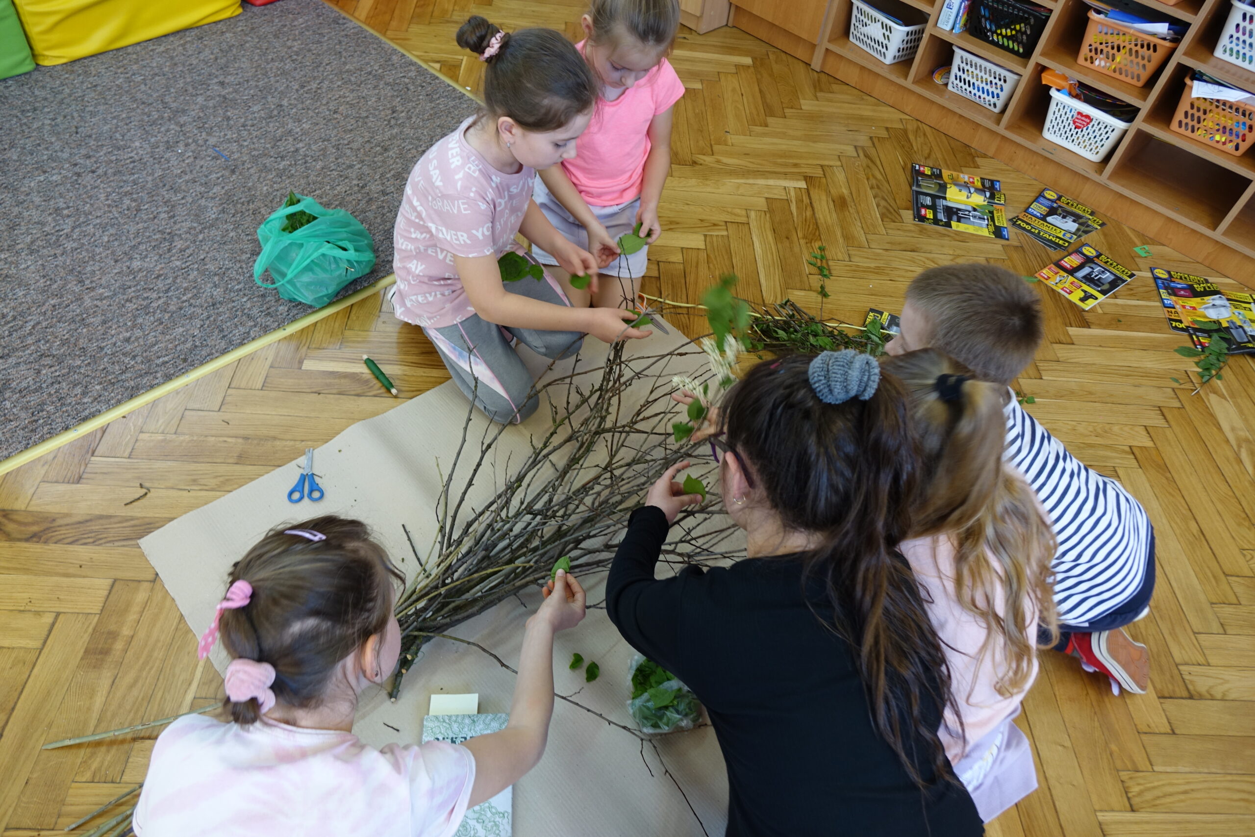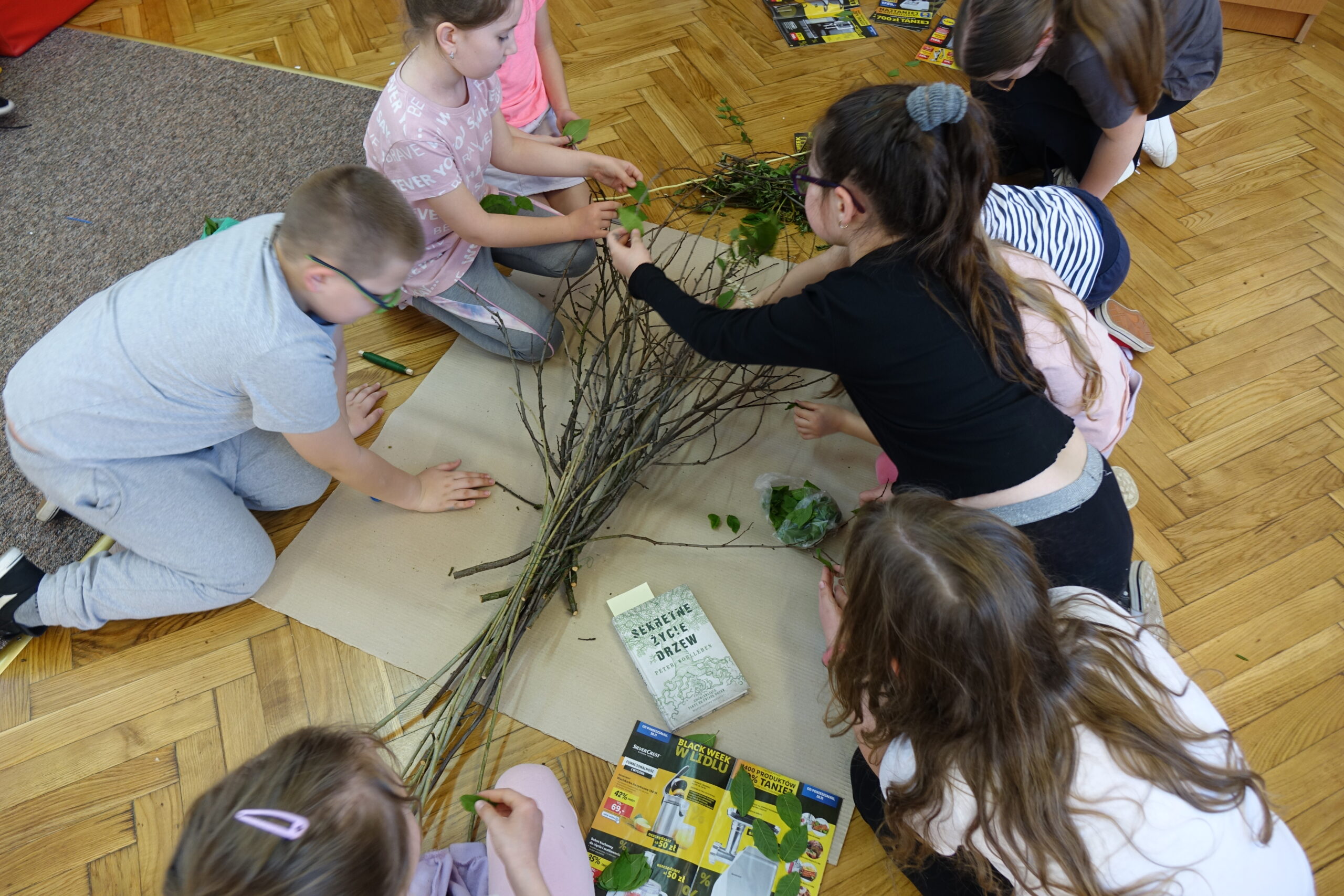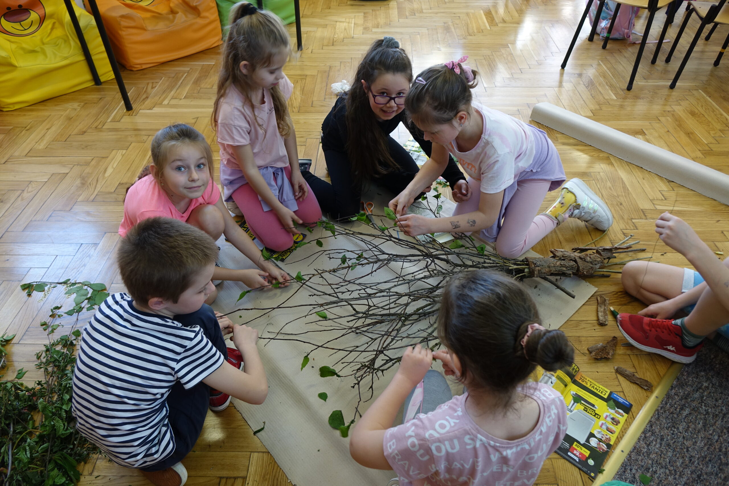 Podsumowaniem warsztatów było manualne działanie uczniów, polegające na stworzeniu modelu drzewa z przyniesionych przez uczniów różnorodnych form przyrody.