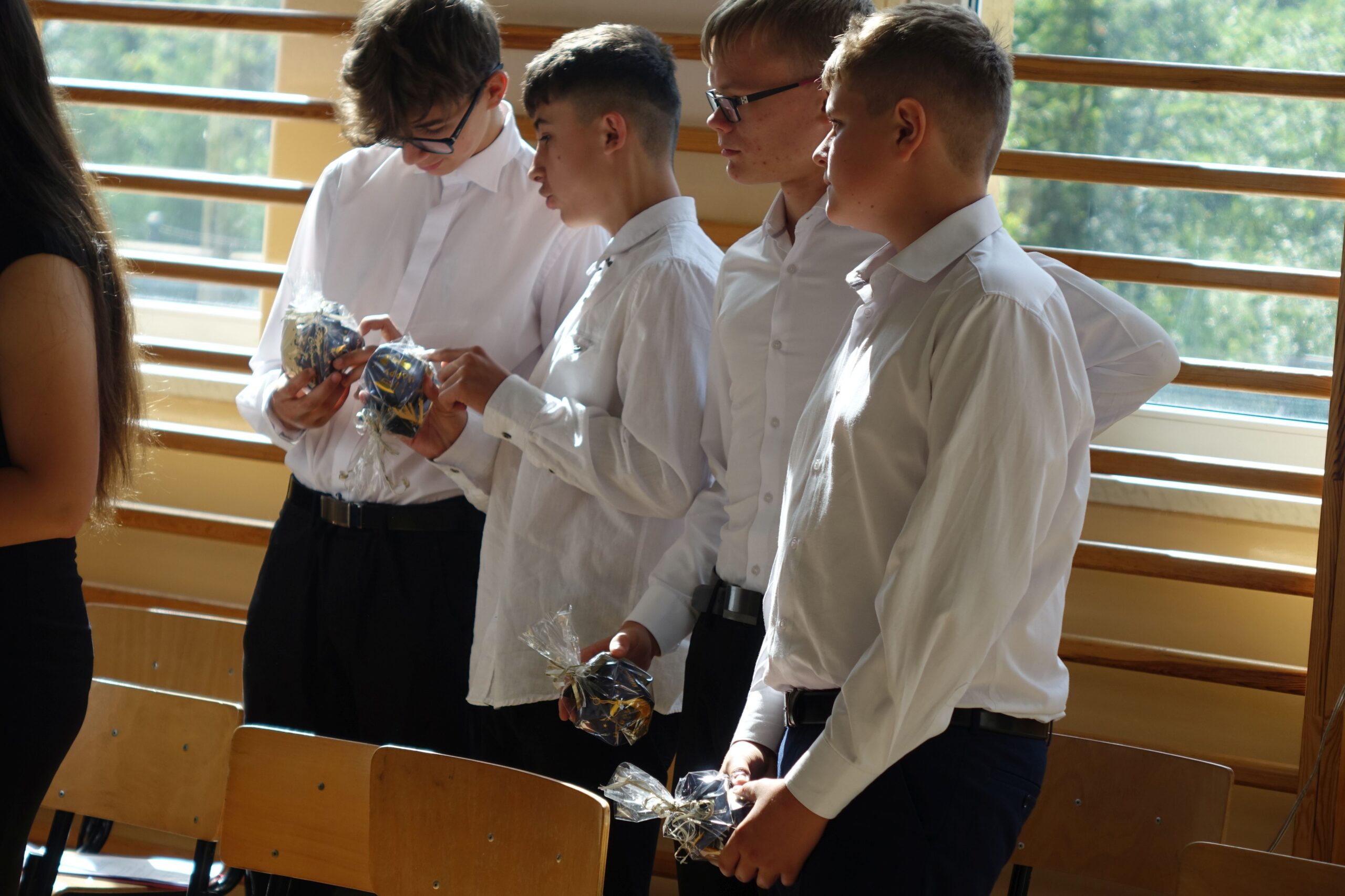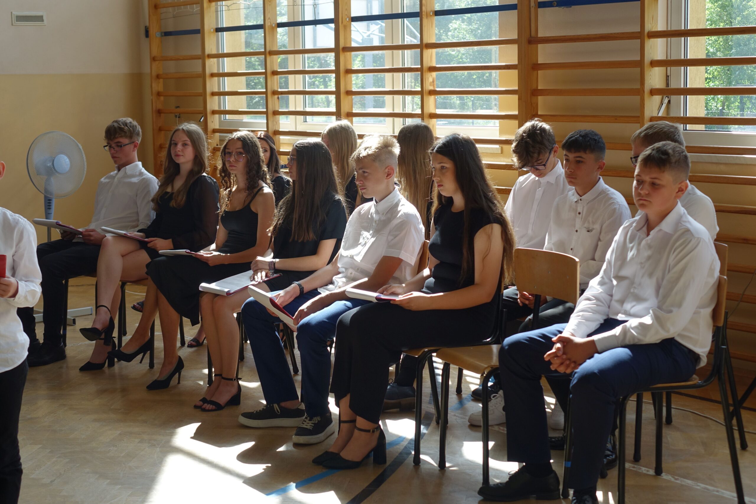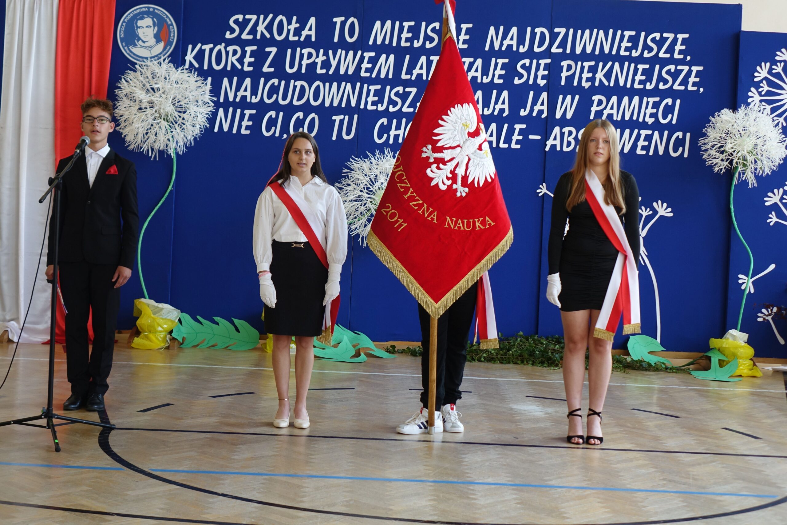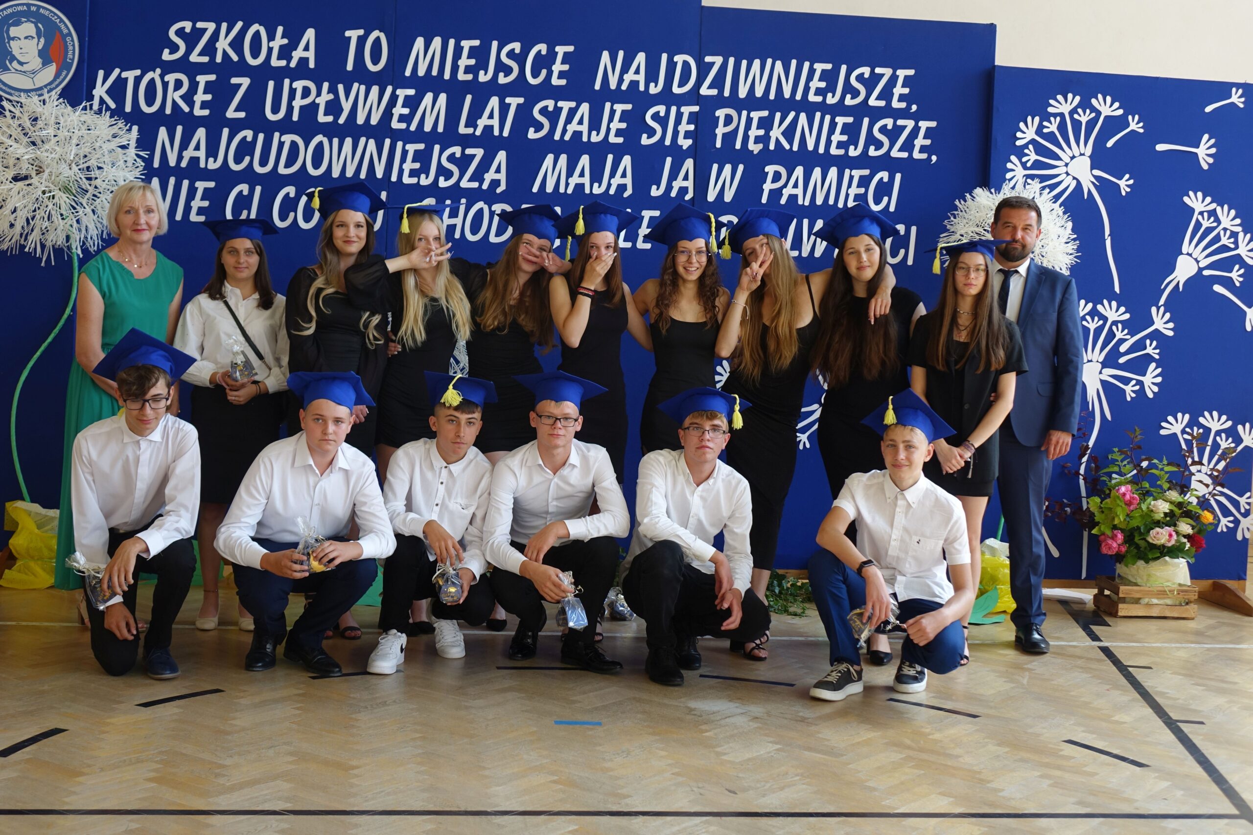 Ósmoklasistom życzył trafnych i dobrych decyzji, by nadal byli pełni entuzjazmu motywacji do działania. Pogratulował odpowiedzialnej postawy podczas trzech dni egzaminu. Wyraził przekonanie, że będą godnie reprezentować szkołę.