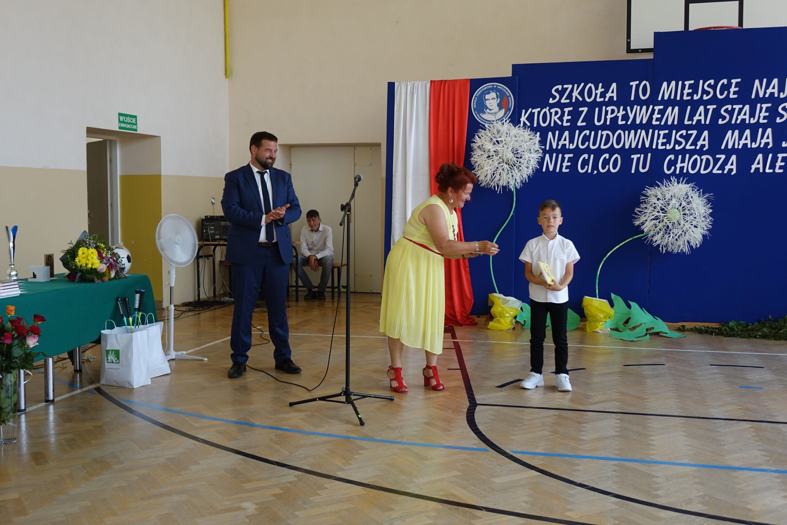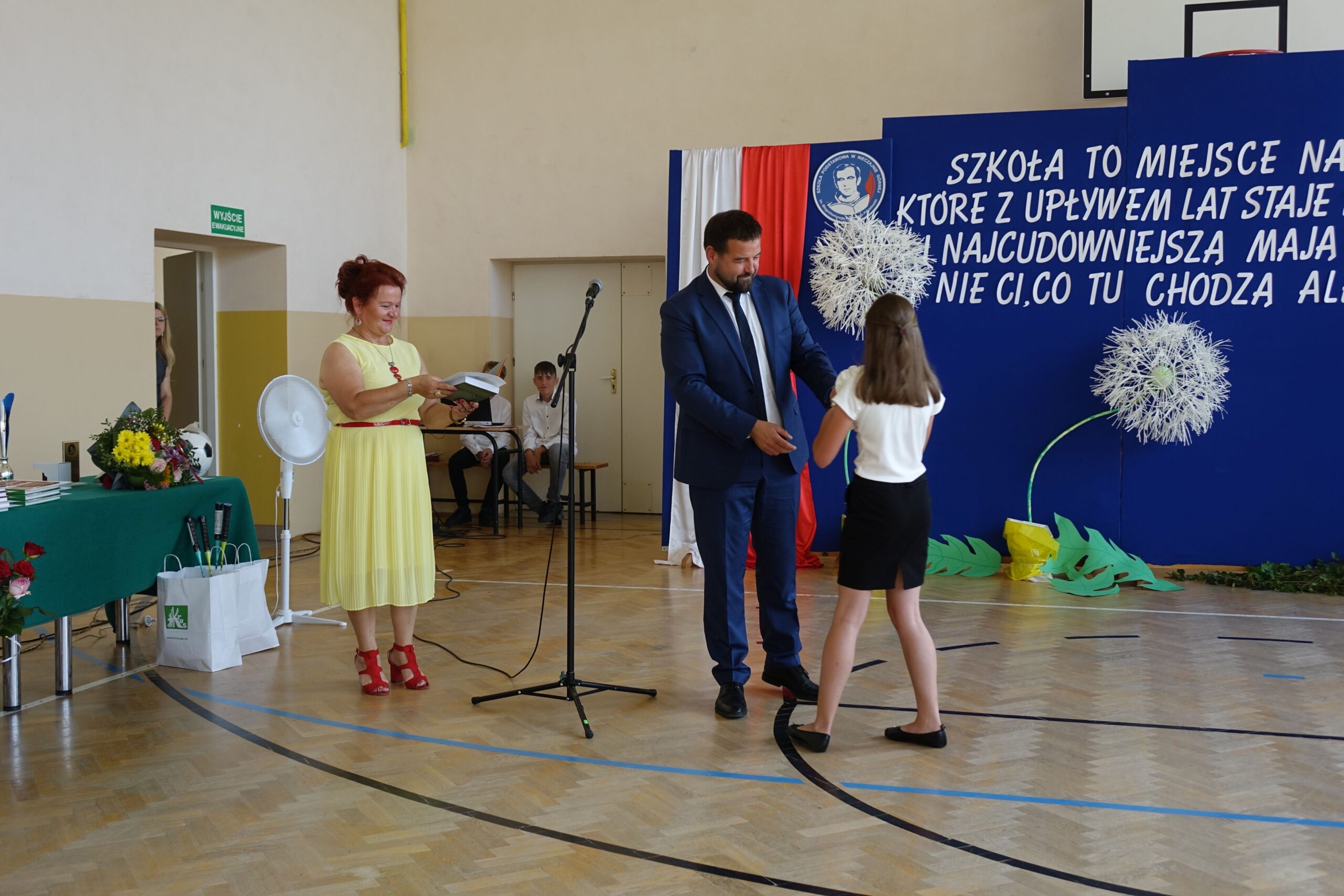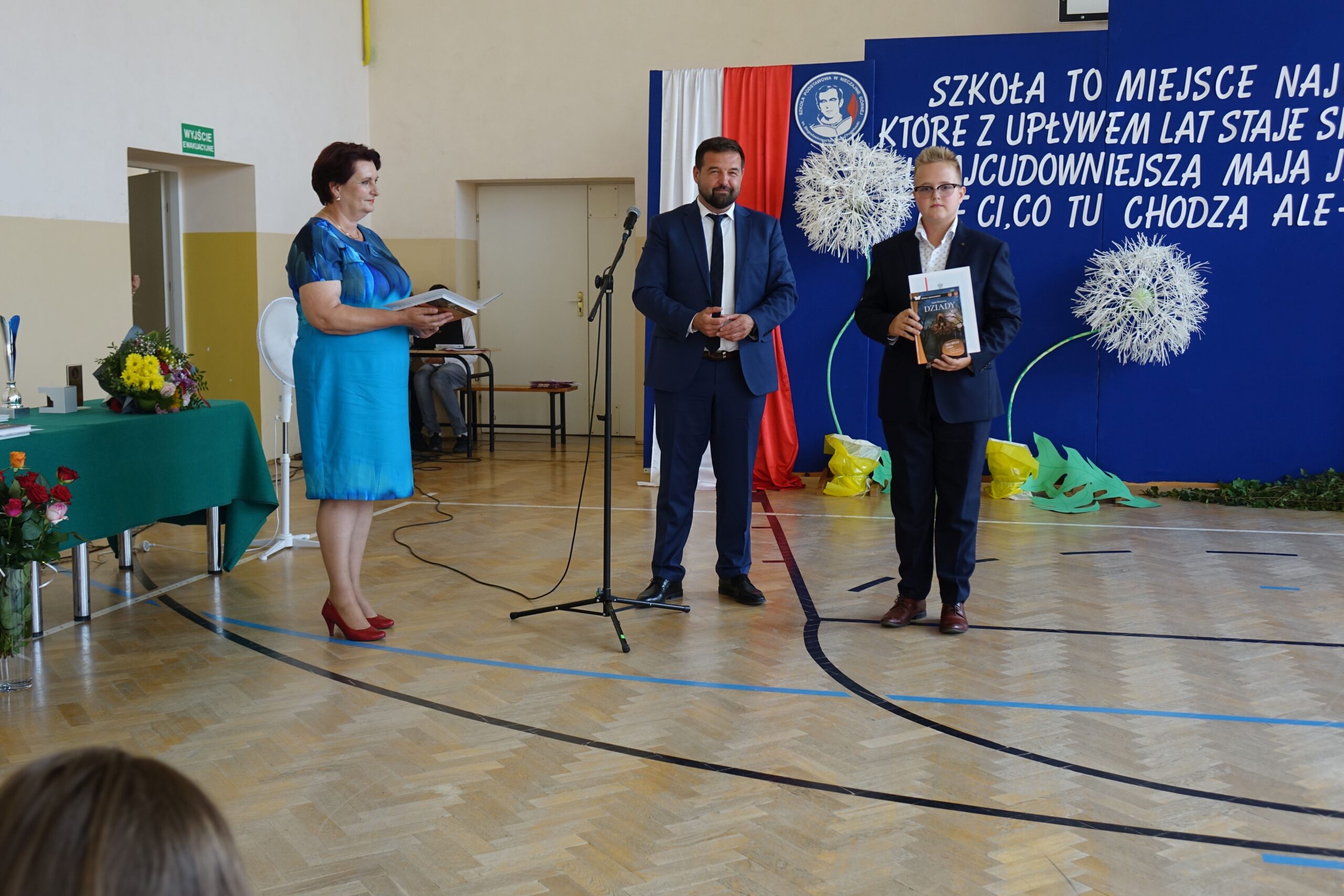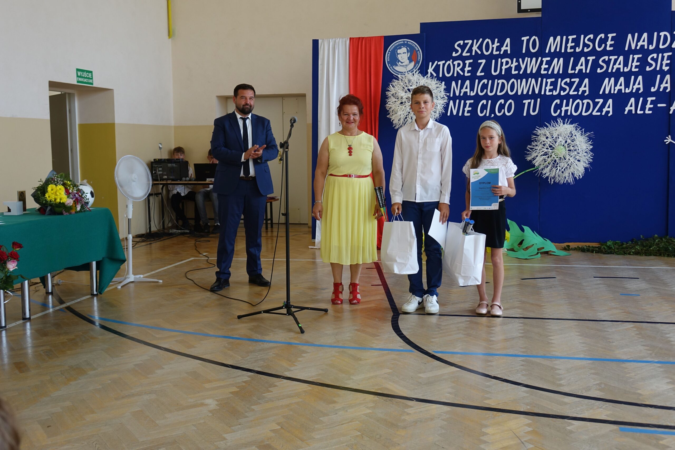 Na koniec uroczystości dyrektor wręczył świadectwa z wyróżnieniem i nagrody książkowe uczniom, którzy osiągnęli najlepsze wyniki w nauce oraz mieli stuprocentową frekwencję.