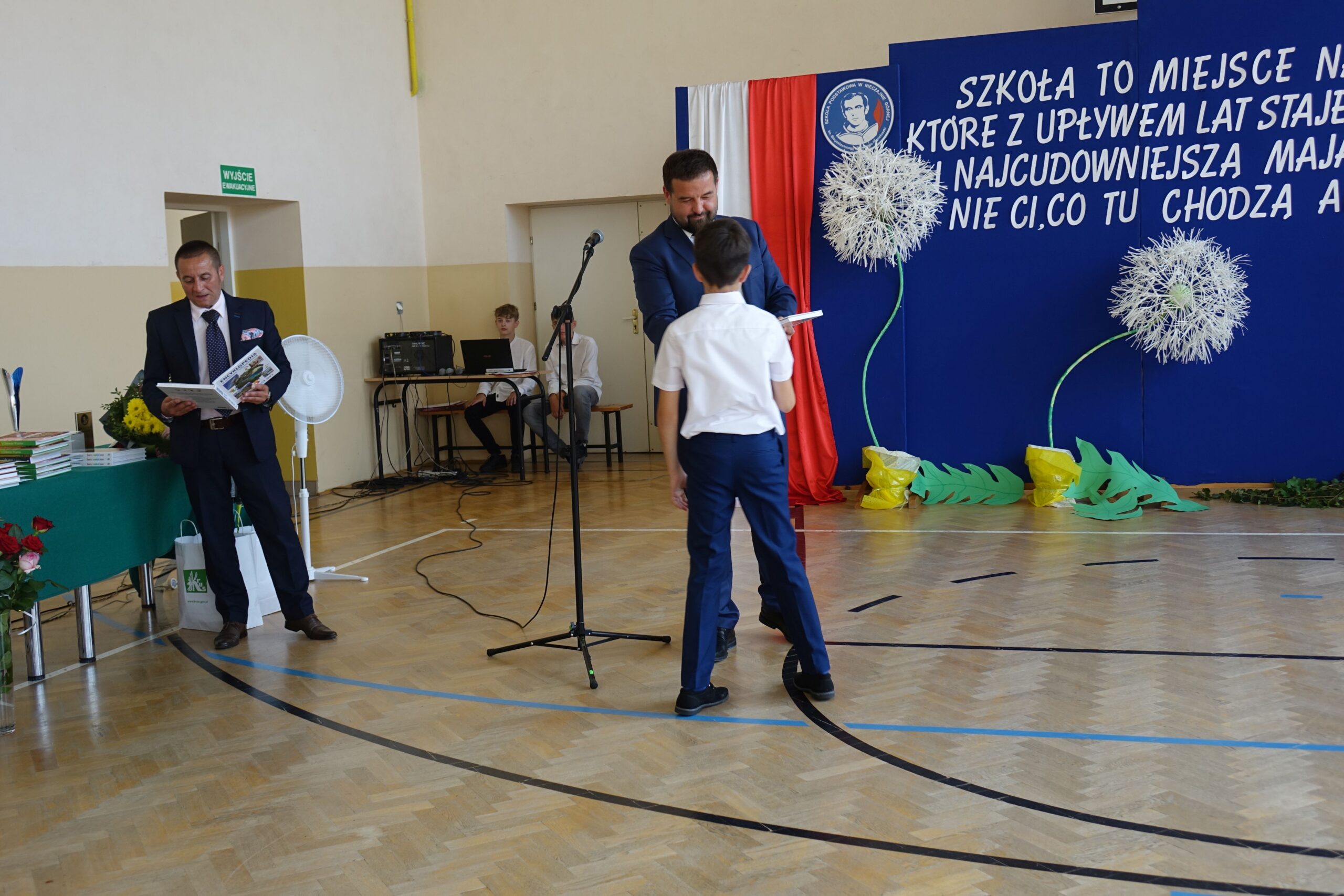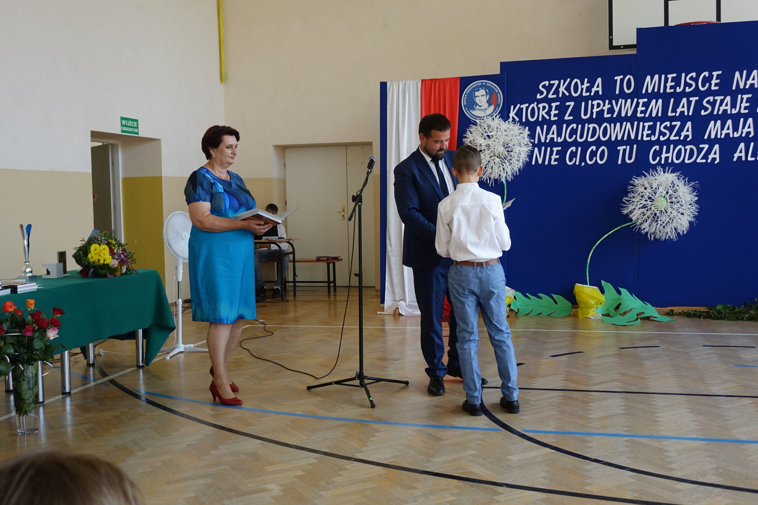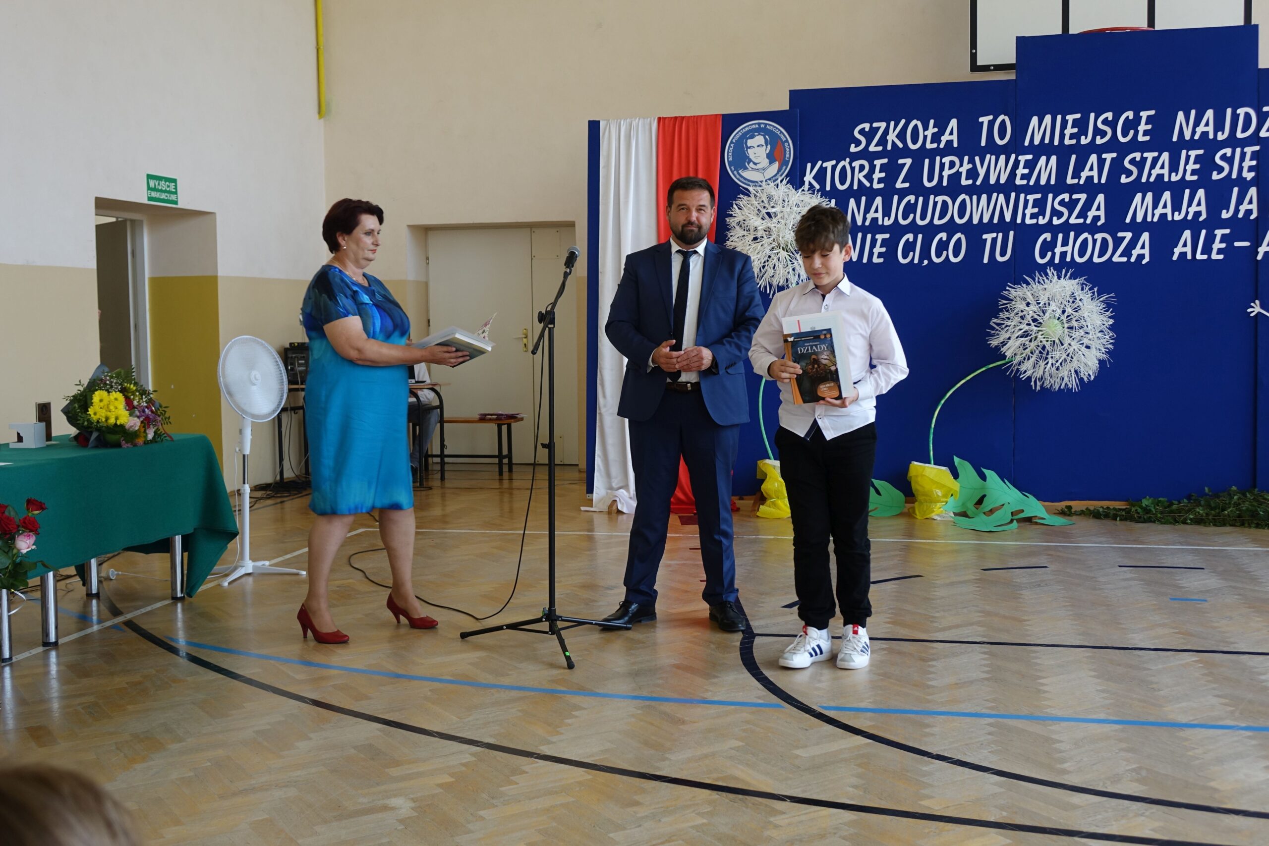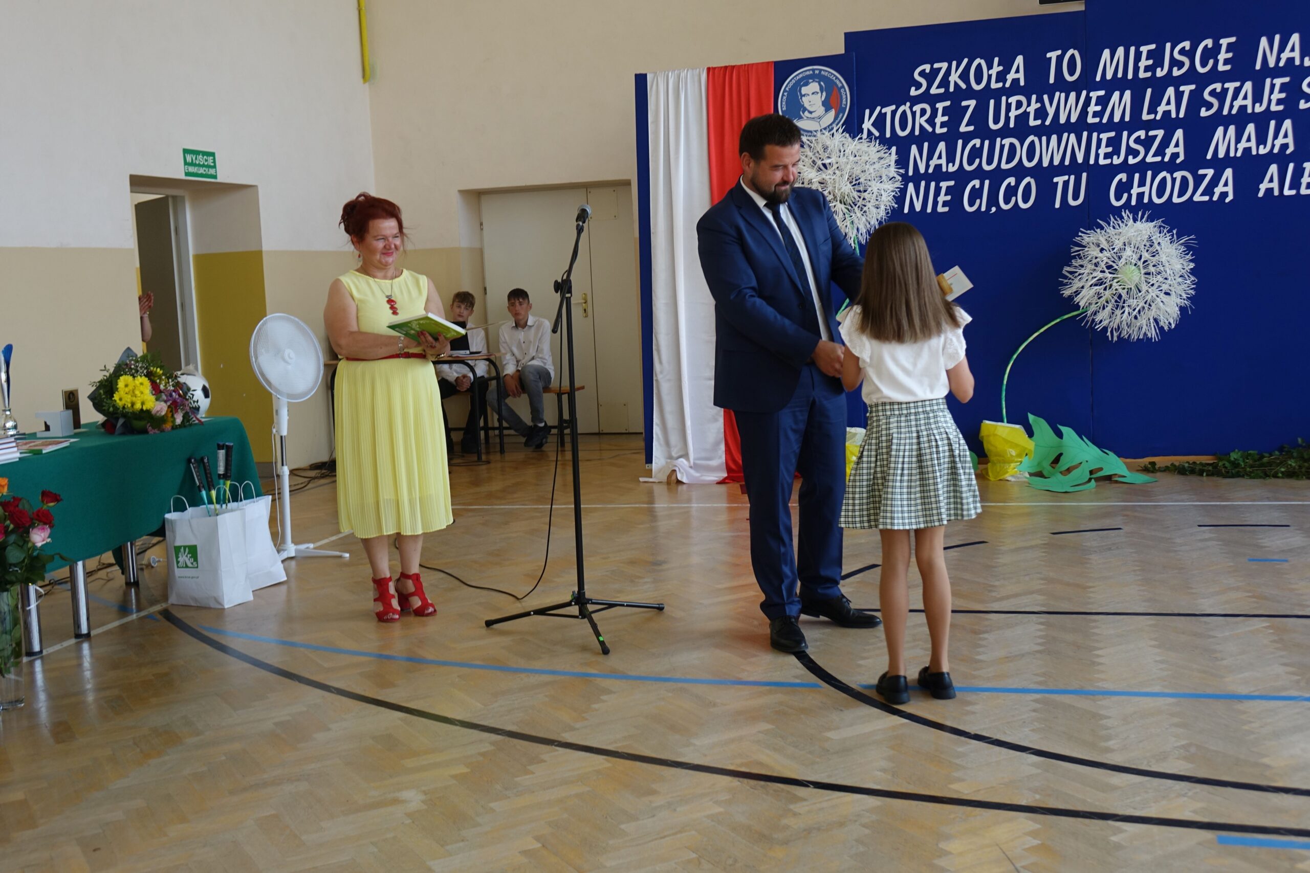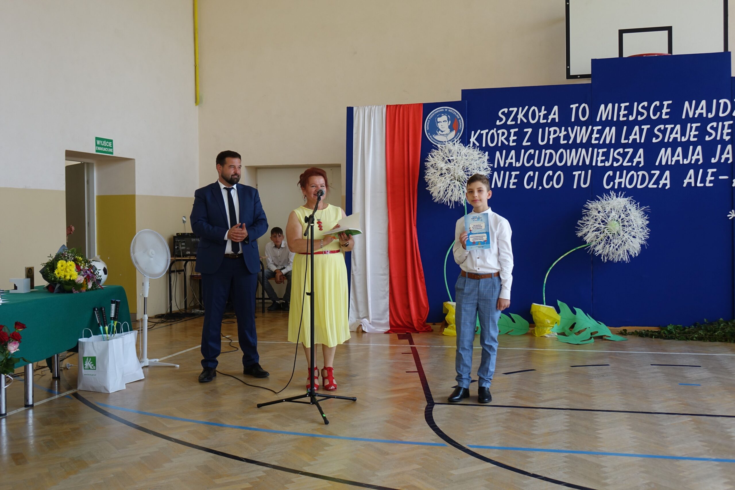 Na koniec uroczystości dyrektor wręczył świadectwa z wyróżnieniem i nagrody książkowe uczniom, którzy osiągnęli najlepsze wyniki w nauce oraz mieli stuprocentową frekwencję.