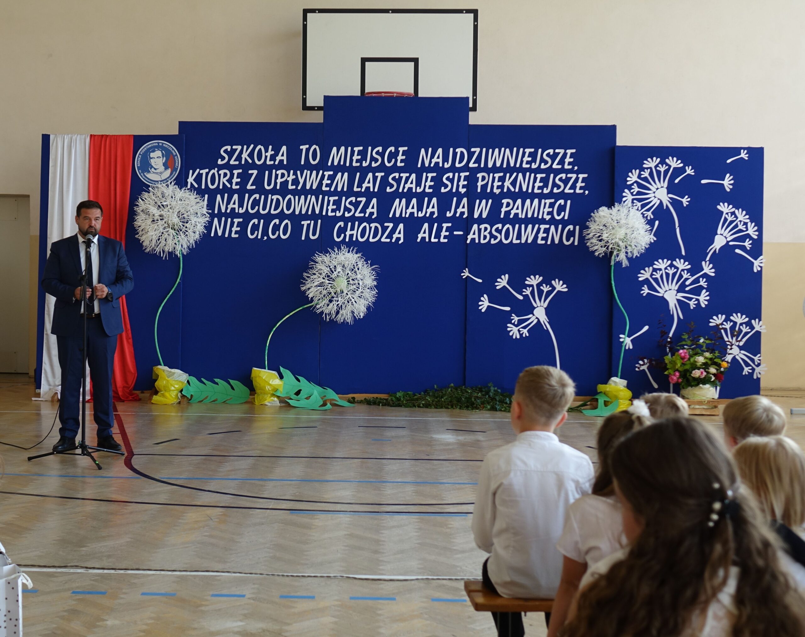 Uroczystą akademię z okazji zakończenia roku szklonego 2023/24 rozpoczął dyrektor szkoły – pan Dariusz Węglowski.