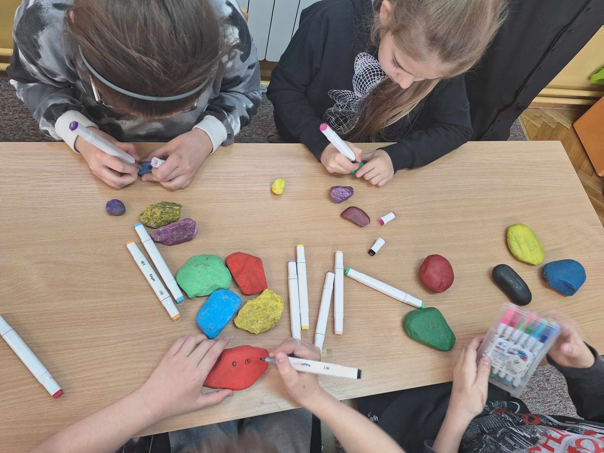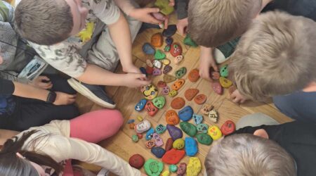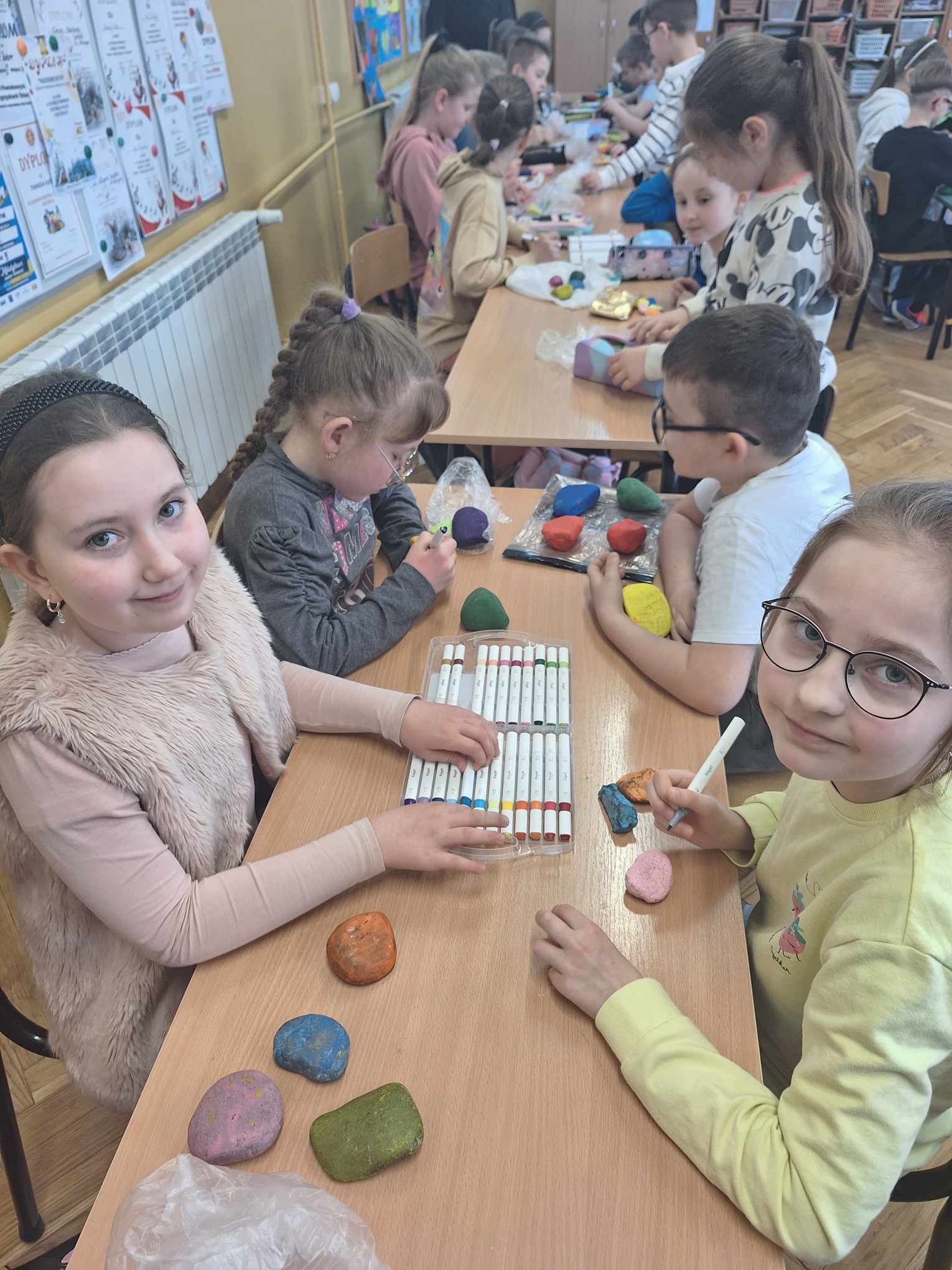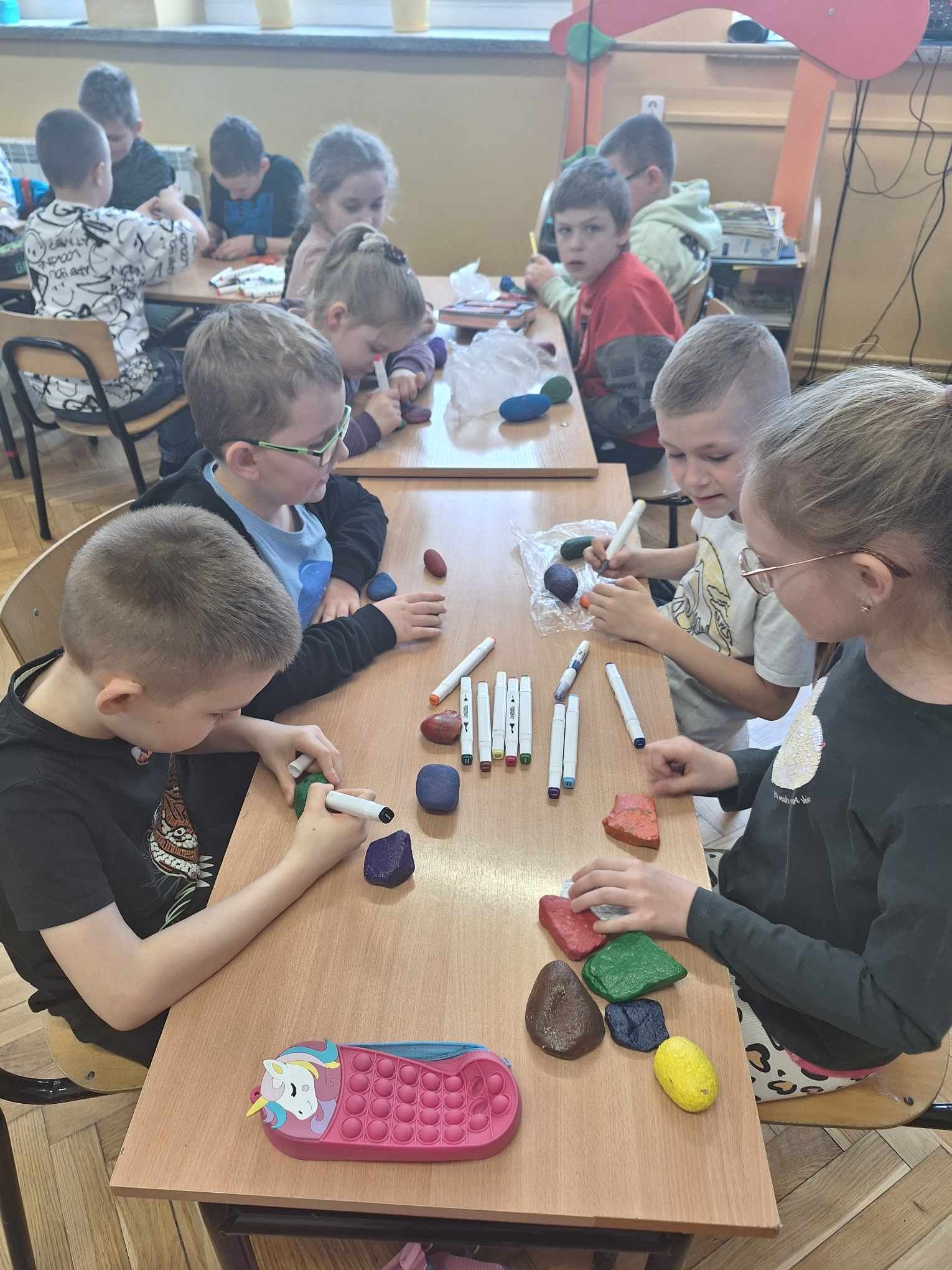 Najmłodsi uczniowie naszej szkoły podsumowując zajęcia stworzyli  kamyczkowe emotki. Praca nad nimi przyniosła im  wiele radości i satysfakcji.