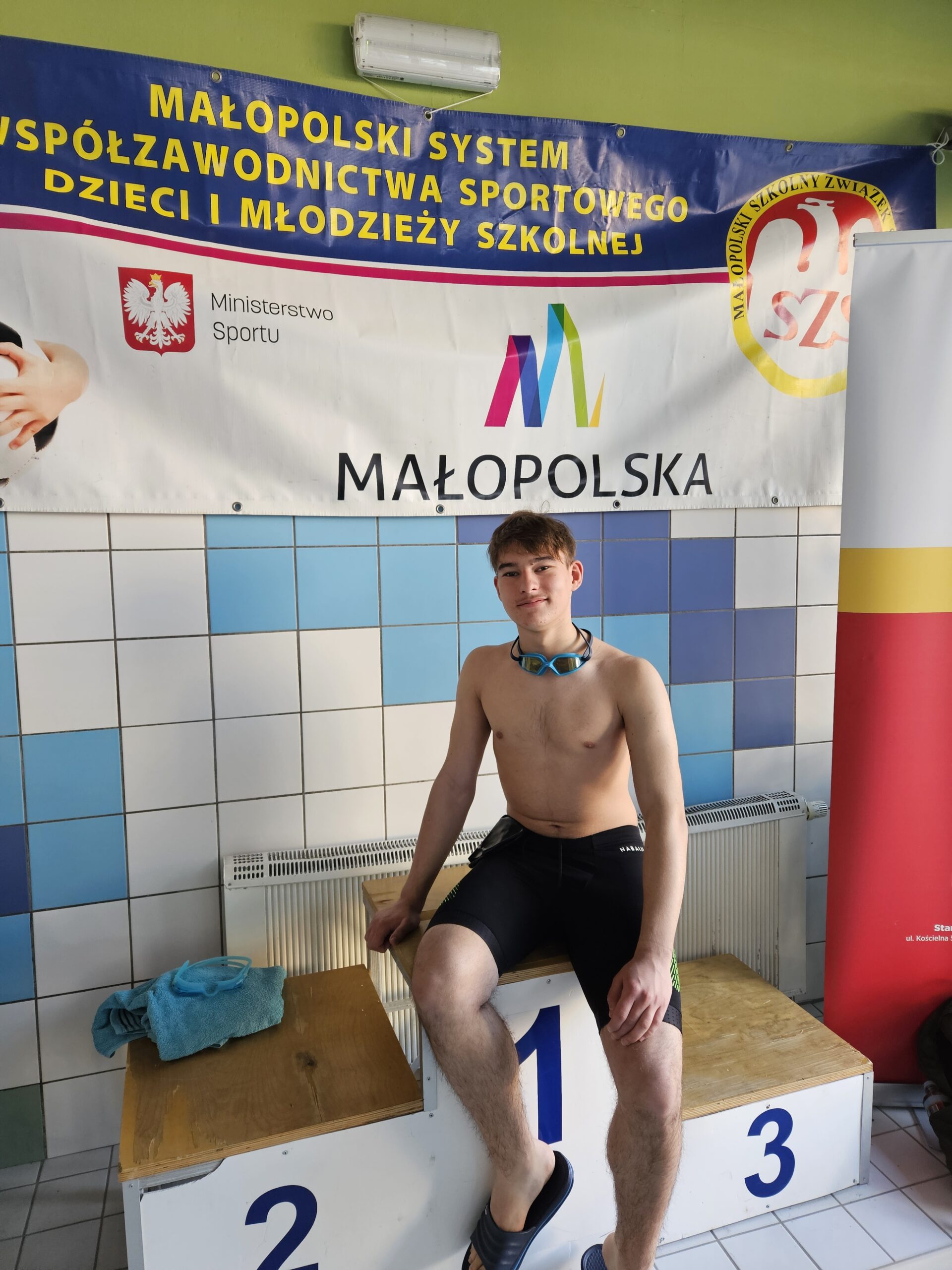 Dnia 20.03.2025 roku na krytej pływalni w Suchej Beskidzkiej odbyły się Małopolskie Igrzyska Młodzieży Szkolnej w Pływaniu Indywidualnym, do których po zwycięstwie w zawodach powiatowych zakwalifikował się Adam Ciąbor – uczeń VIII klasy naszej szkoły. Adam startował w stylu klasycznym na dystansie 50 metrów i spisał się świetnie zdobywając 24. miejsce