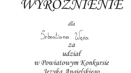 Wyróżnienie w Powiatowym Konkursie Języka Angielskiego
