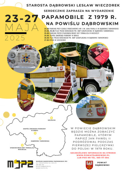Z inicjatywy Starosty Dąbrowskiego Lesława Wieczorka, historyczny samochód papieski JP2 z 1979 roku będzie gościł w regionie dąbrowskim w dniach 23–27 maja 2025 r.