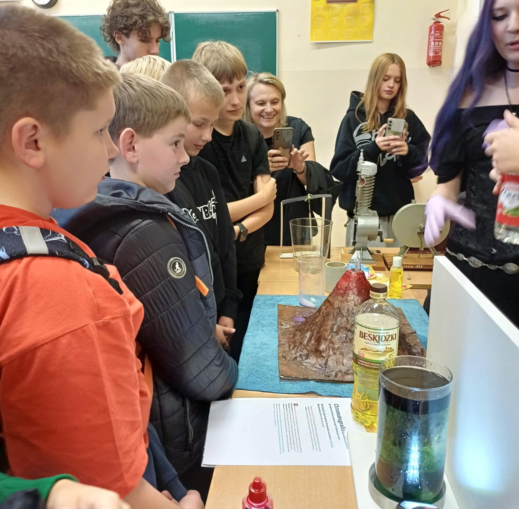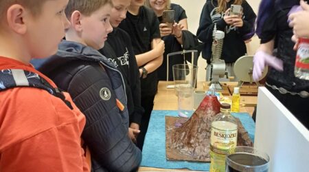 W II LO uczniowie uczestniczyli w pokazach technicznych, fizycznych i chemicznych – największe wrażenie zrobiły na wszystkich widowiskowe reakcje chemiczne, szczególnie wybuch wulkanu.