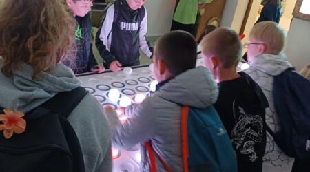 Ostatnim punktem programu była wizyta w Pasażu Odkryć – Centrum Nauki i Techniki. Tam uczniowie oglądali fascynujące doświadczenia chemiczne, badali fale dźwiękowe, mogli sprawdzić, jak brzmi kosmos, a także poznali zjawiska akustyczne występujące w przyrodzie. Eksperymenty bardzo spodobały się uczestnikom.