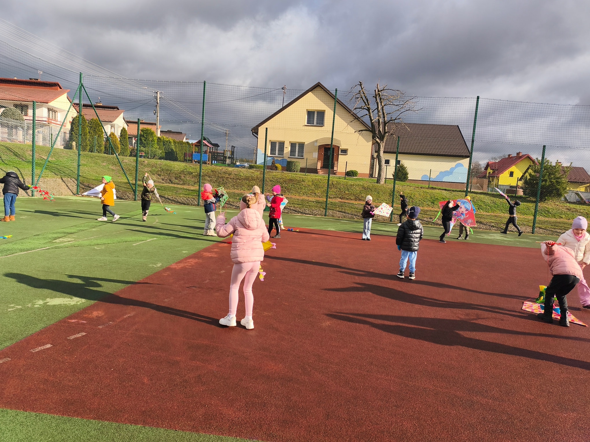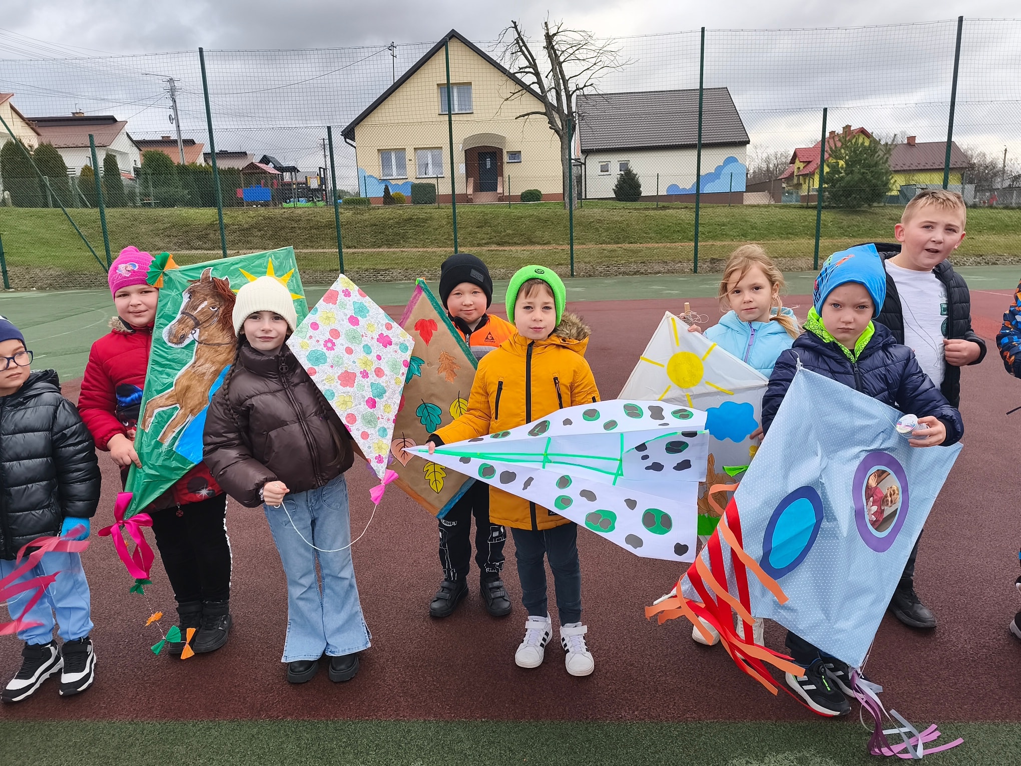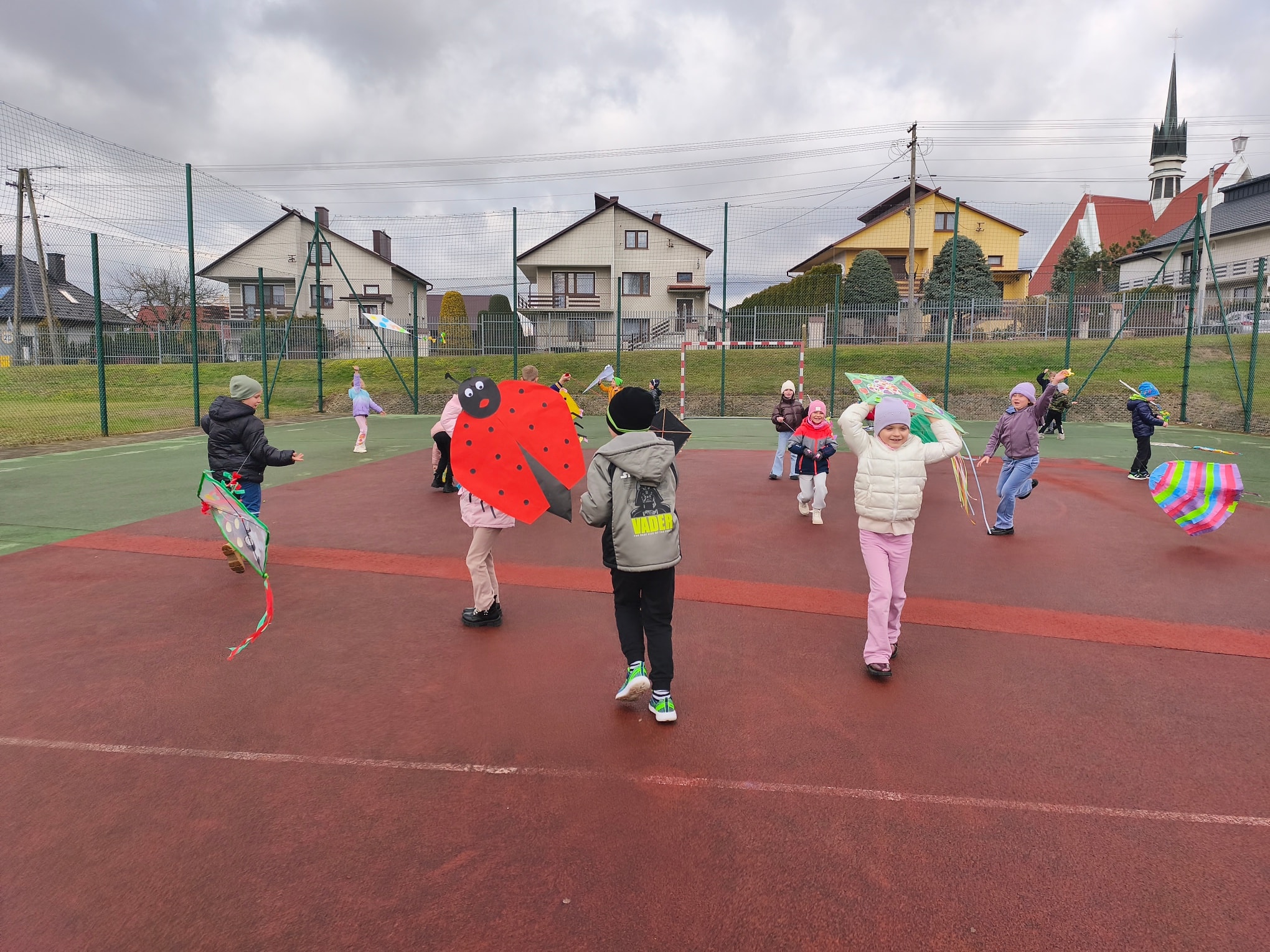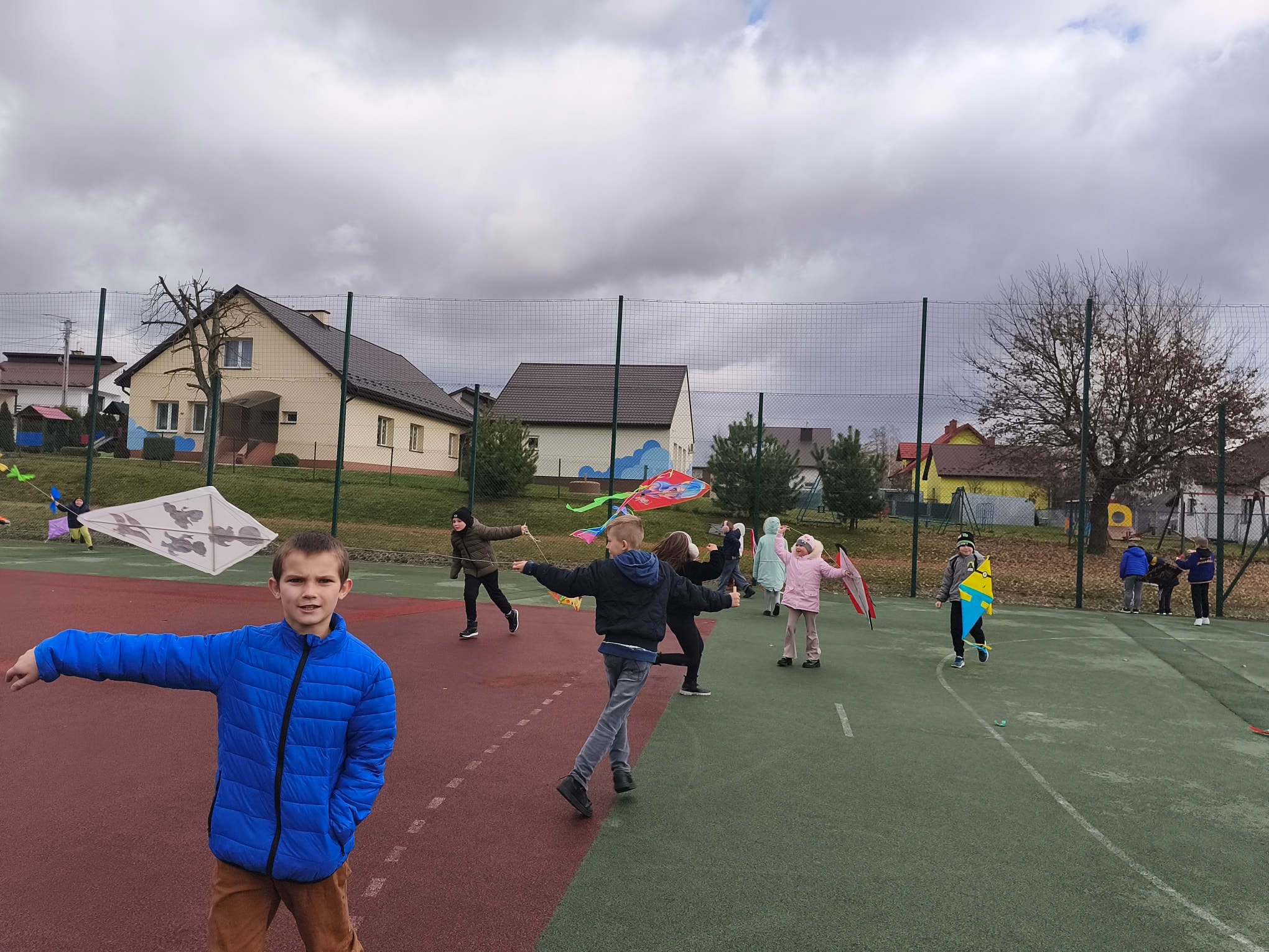 Z tej okazji klasy 1-3 wzięły udział w konkursie na najpiękniejszy latawiec. Zwycięzcy otrzymali dyplomy i drobne nagrody. Uczniowie udali się na boisko szkolne, gdzie wspólnie puszczali latawce. Dzień Latawca okazał się pięknym świętem wspólnej zabawy radości i kreatywności.