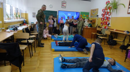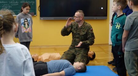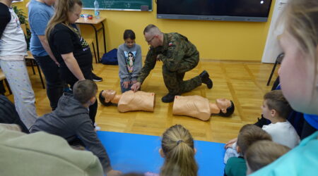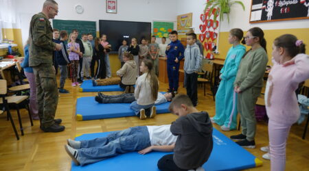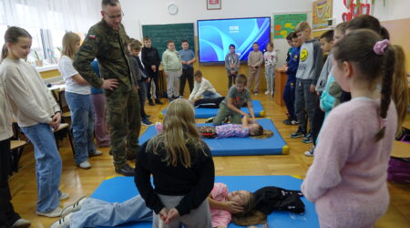 Zajęcia z edukacji proobronnej poprowadził żołnierz Sił Zbrojnych Rzeczypospolitej Polskiej starszy kapral Łukasz Knapik.