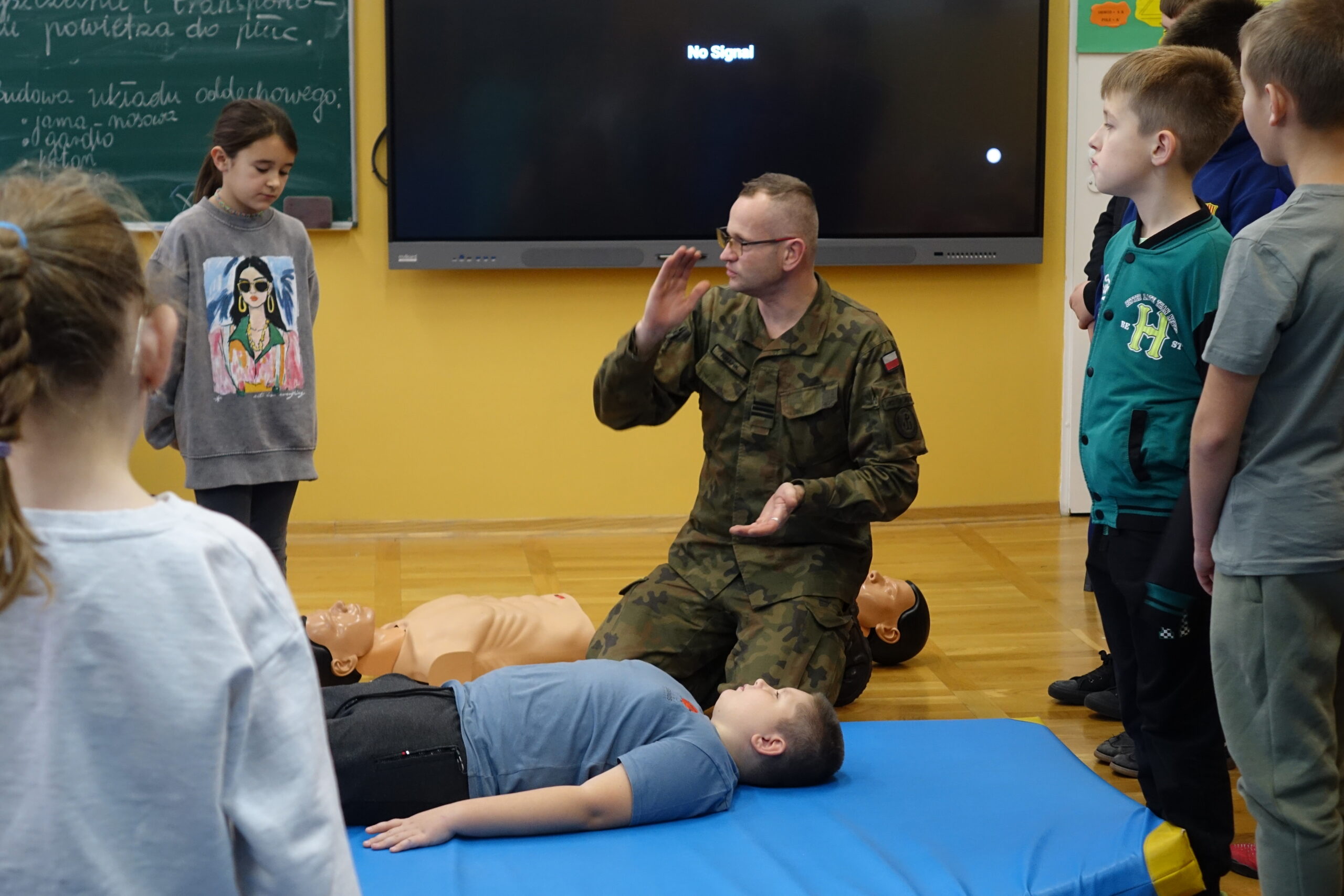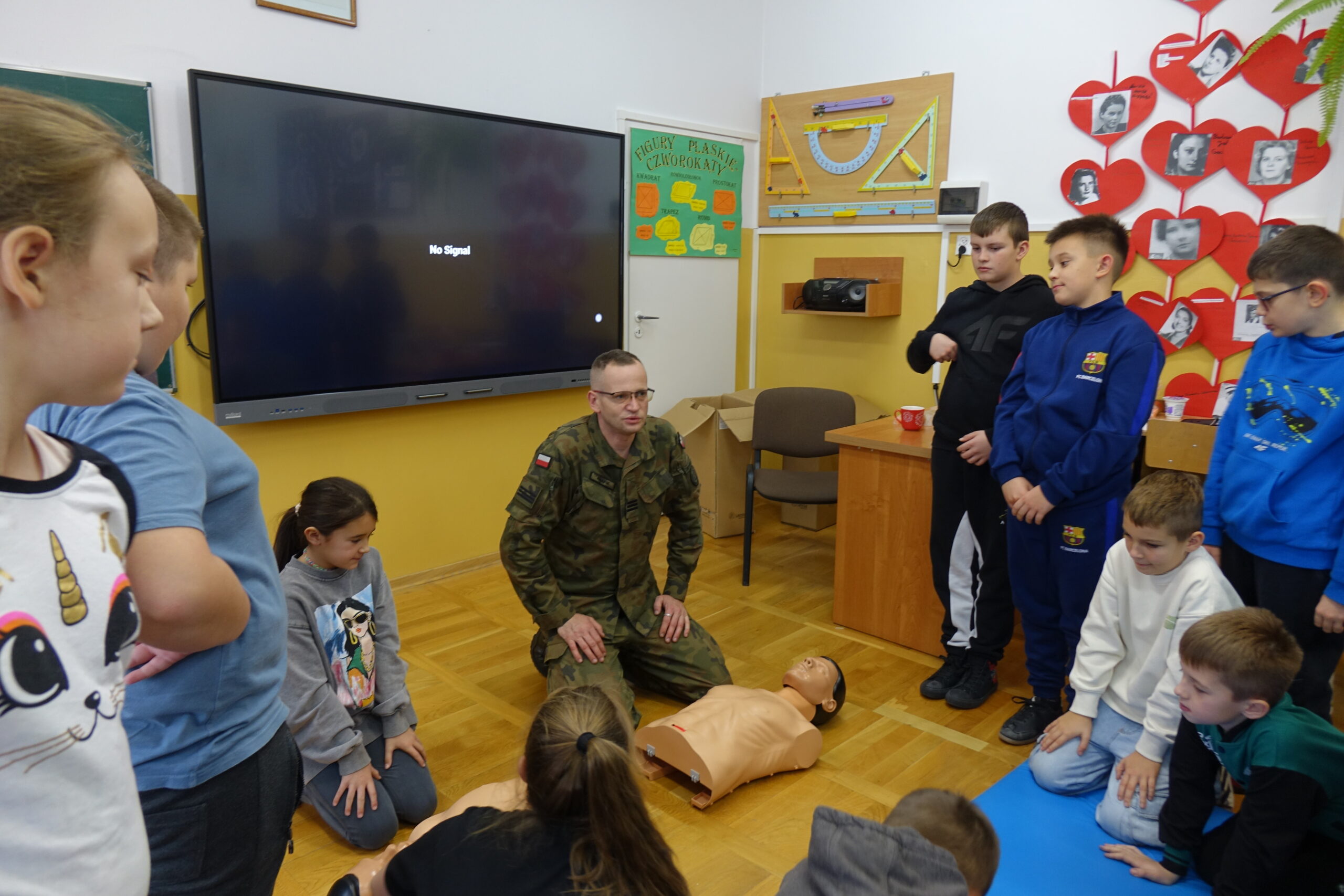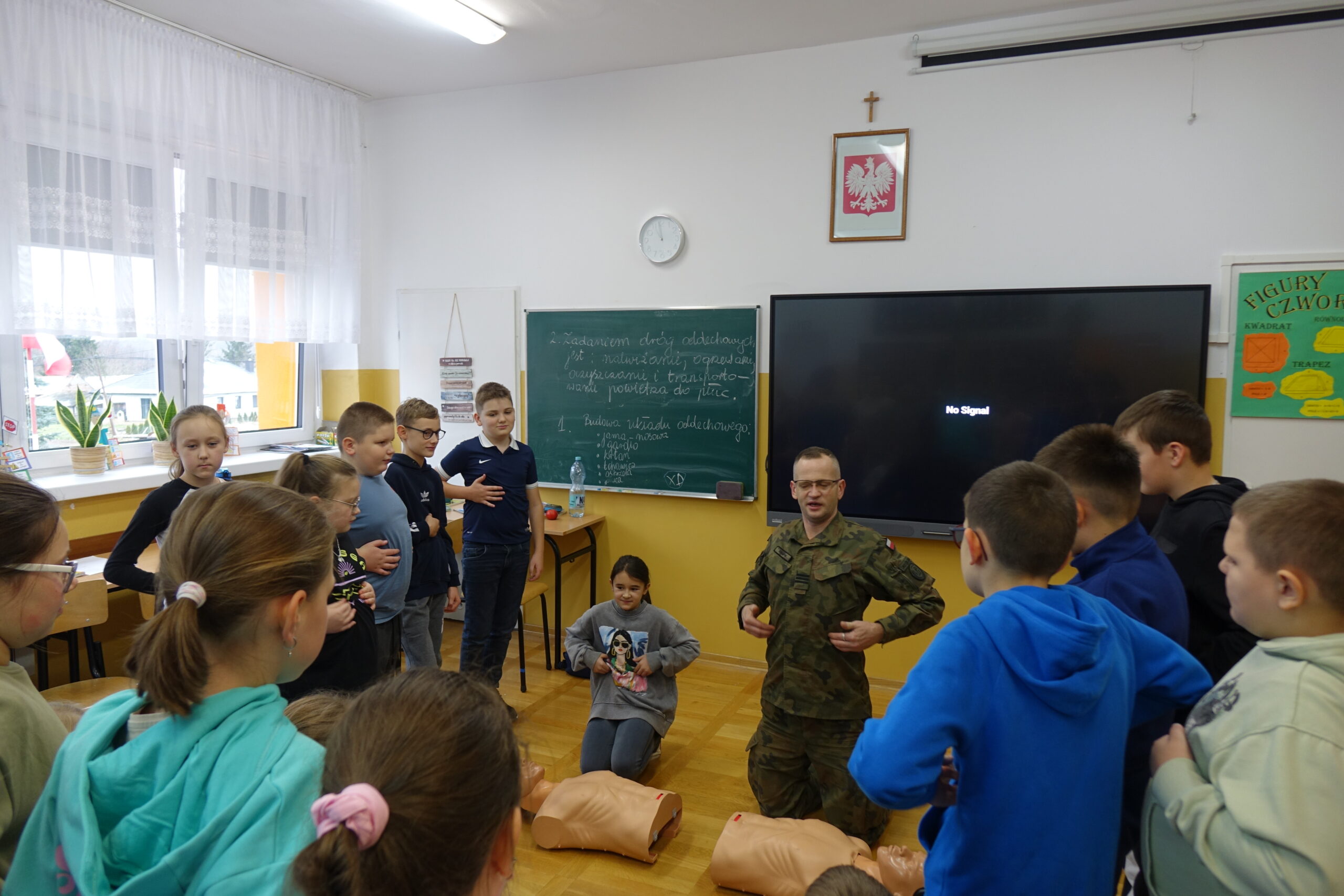 Zajęcia z edukacji proobronnej poprowadził żołnierz Sił Zbrojnych Rzeczypospolitej Polskiej starszy kapral Łukasz Knapik.