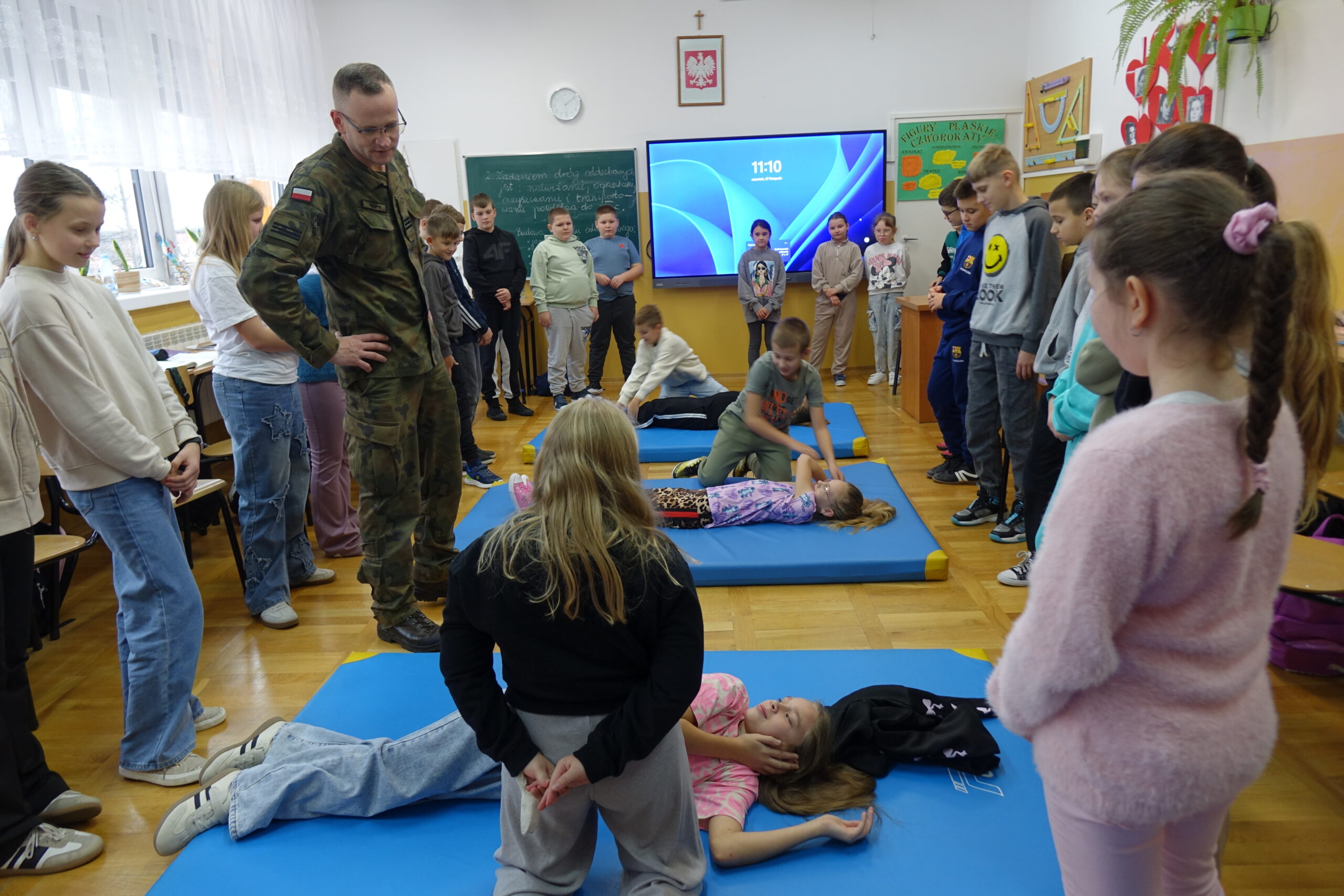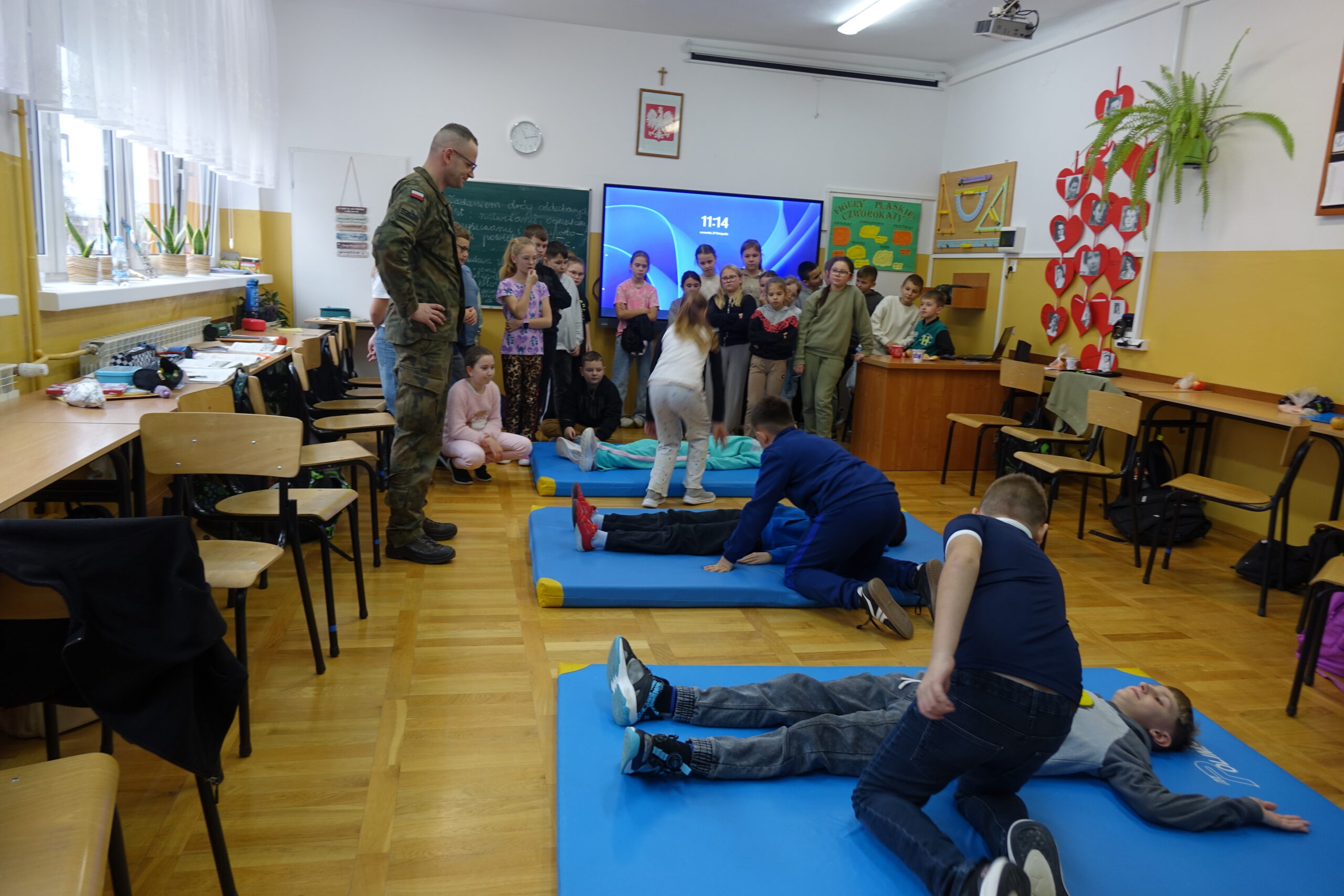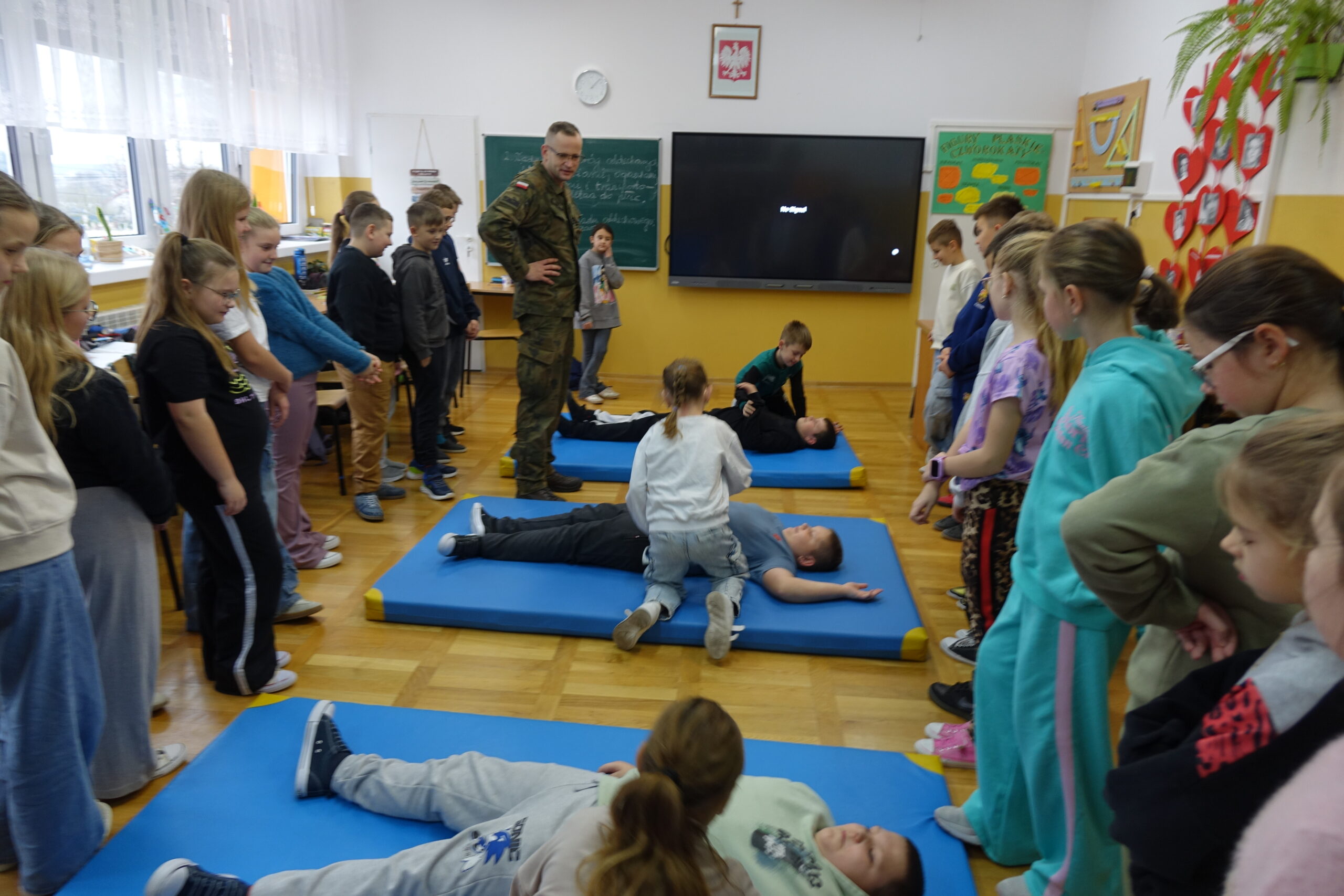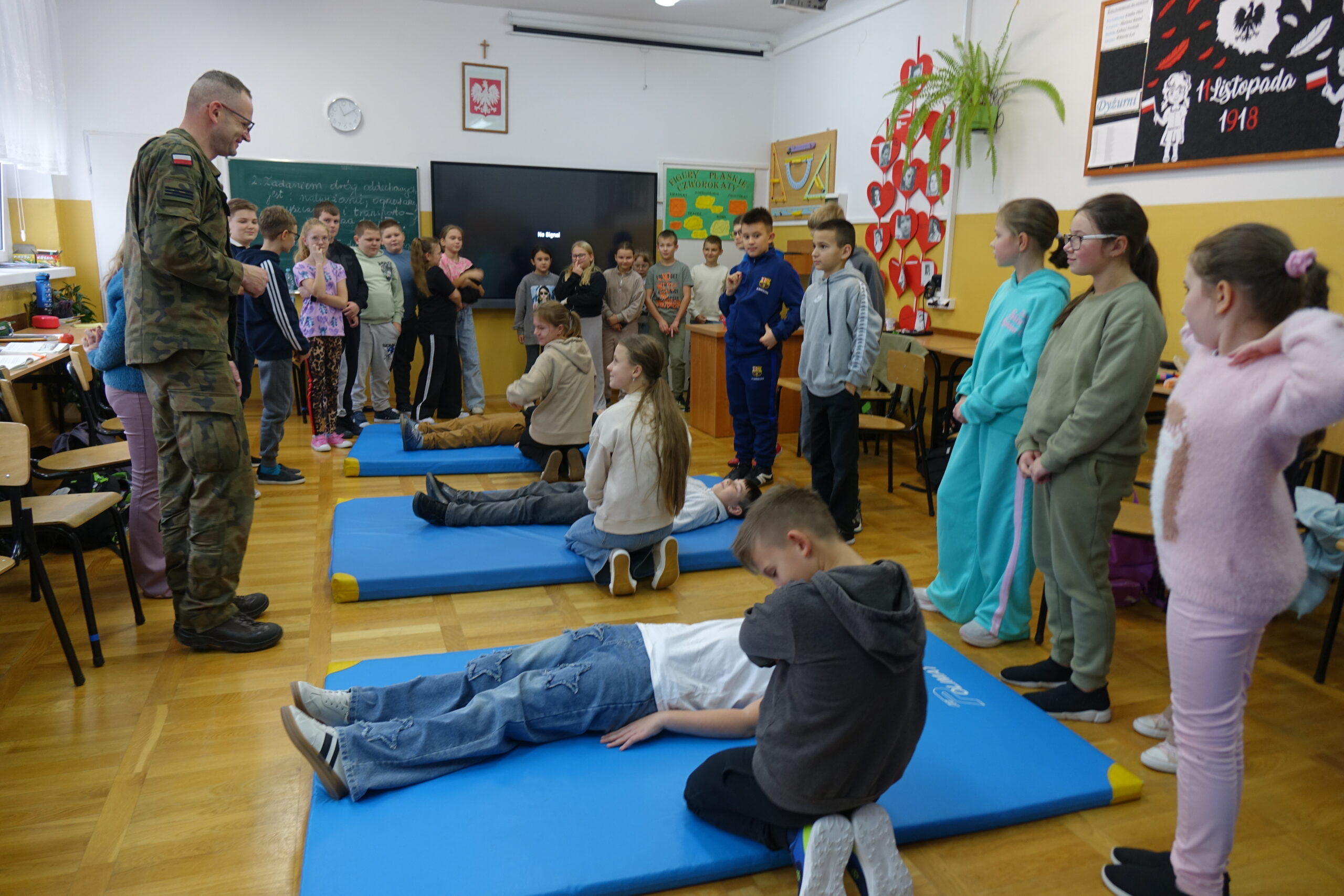 Zajęcia z edukacji proobronnej poprowadził żołnierz Sił Zbrojnych Rzeczypospolitej Polskiej starszy kapral Łukasz Knapik.