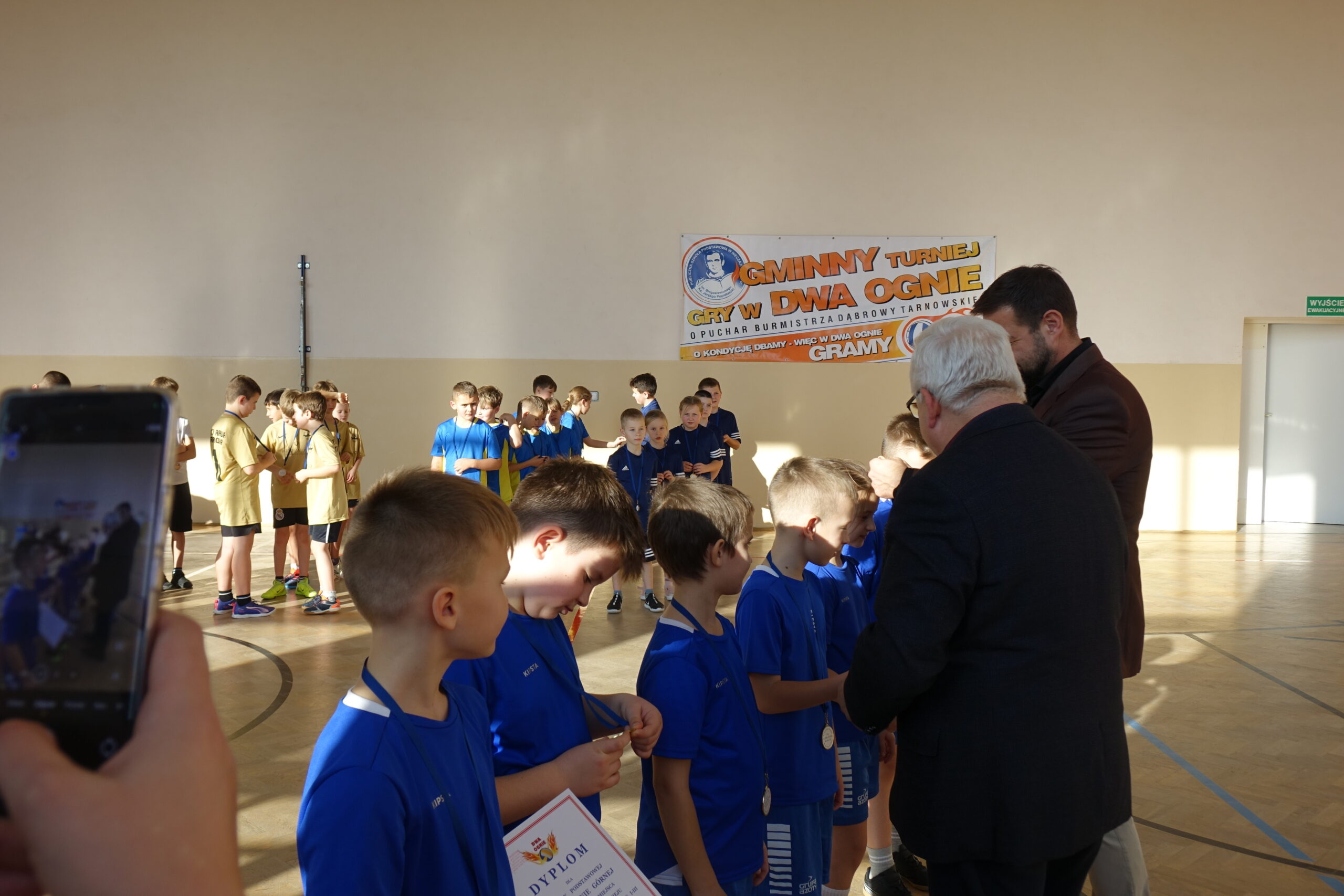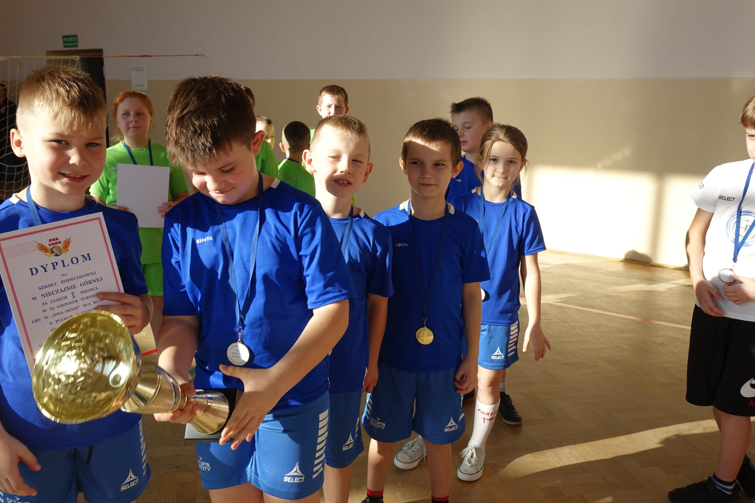 Nasza szkoła w Nieczajnie Górnej po raz jedenasty zaprosiła uczniów klas 1-3 ze wszystkich szkół z terenu gminy na rozgrywki turniejowe w „Dwa ognie” o Puchar Burmistrza Dąbrowy Tarnowskiej. Turniej odbył się w czwartek, 20 listopada 2025 roku, z udziałem sześciu drużyn. Po przeszło dwóch godzinach zmagań pod okiem sędziego Jarosława Piaseckiego ze Szkoły Podstawowej w Luszowicach, można było ogłosić wyniki. Burmistrz Dąbrowy Tarnowskiej Krzysztof Kaczmarski wraz z dyrektorem szkoły Dariuszem Węglowskim przekazali zwycięski puchar i złote medale „złotej szóstce” zawodników z klasy III w Nieczajnej Górnej w składzie: kapitan Wiktor Banaś, Szymon Chmura, Tomasz Dudek, Karolina Świerczek, Artur Świerczek i Krystian Bukowski.